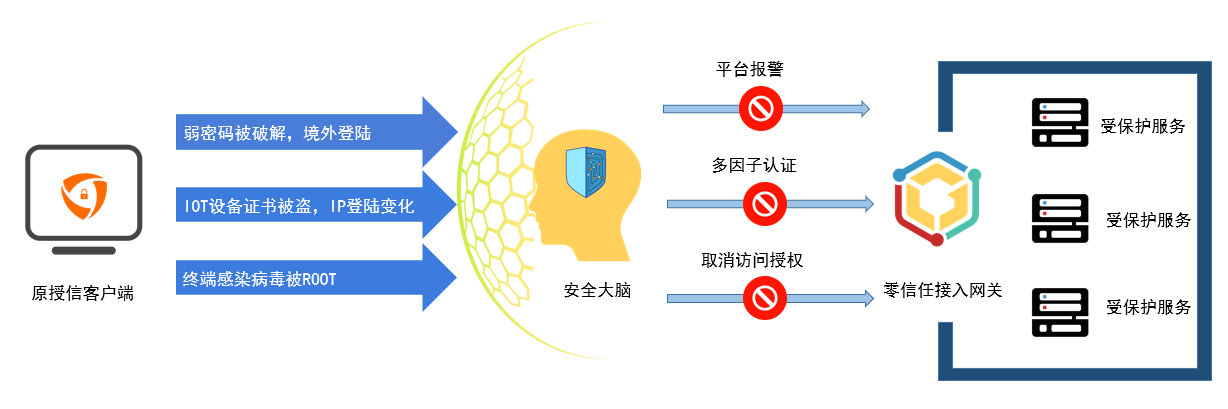 同时系统会根据身份的登陆习惯变化(如时间、地理位置、网络等),并结合终端运行环境检测评级技术, 动态调整用户登录策略,始终控制用户的最小访问权限。