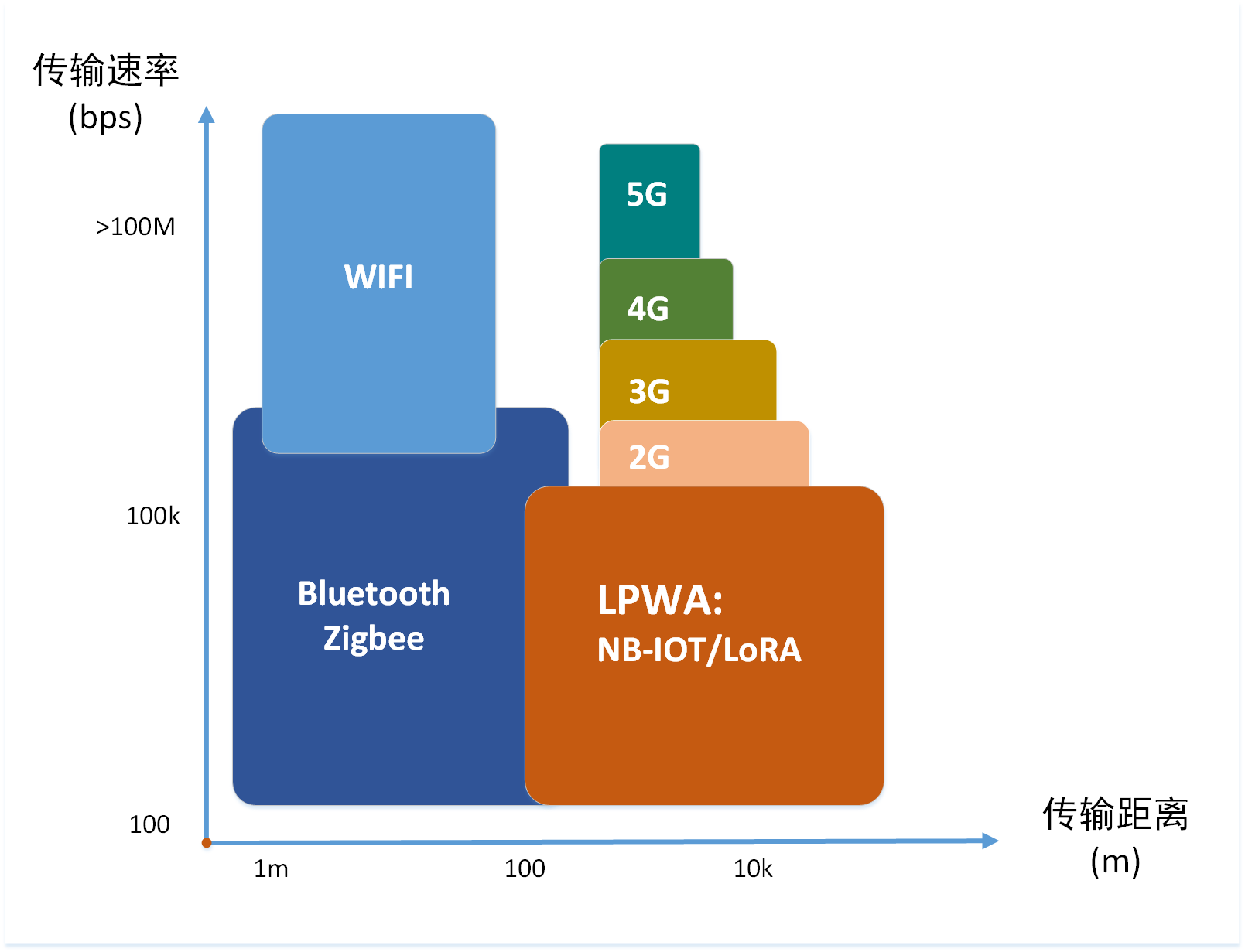 各无线通讯技术传输速率和传输距离对比