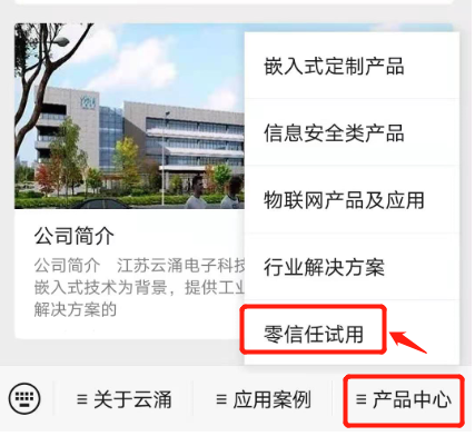 首先关注威廉希尔官方微信公众号,然后进入【产品中心】菜单,并点击下拉菜单中的【零信任试用】进入试用页面,点击免费试用根据提示操作即可。
