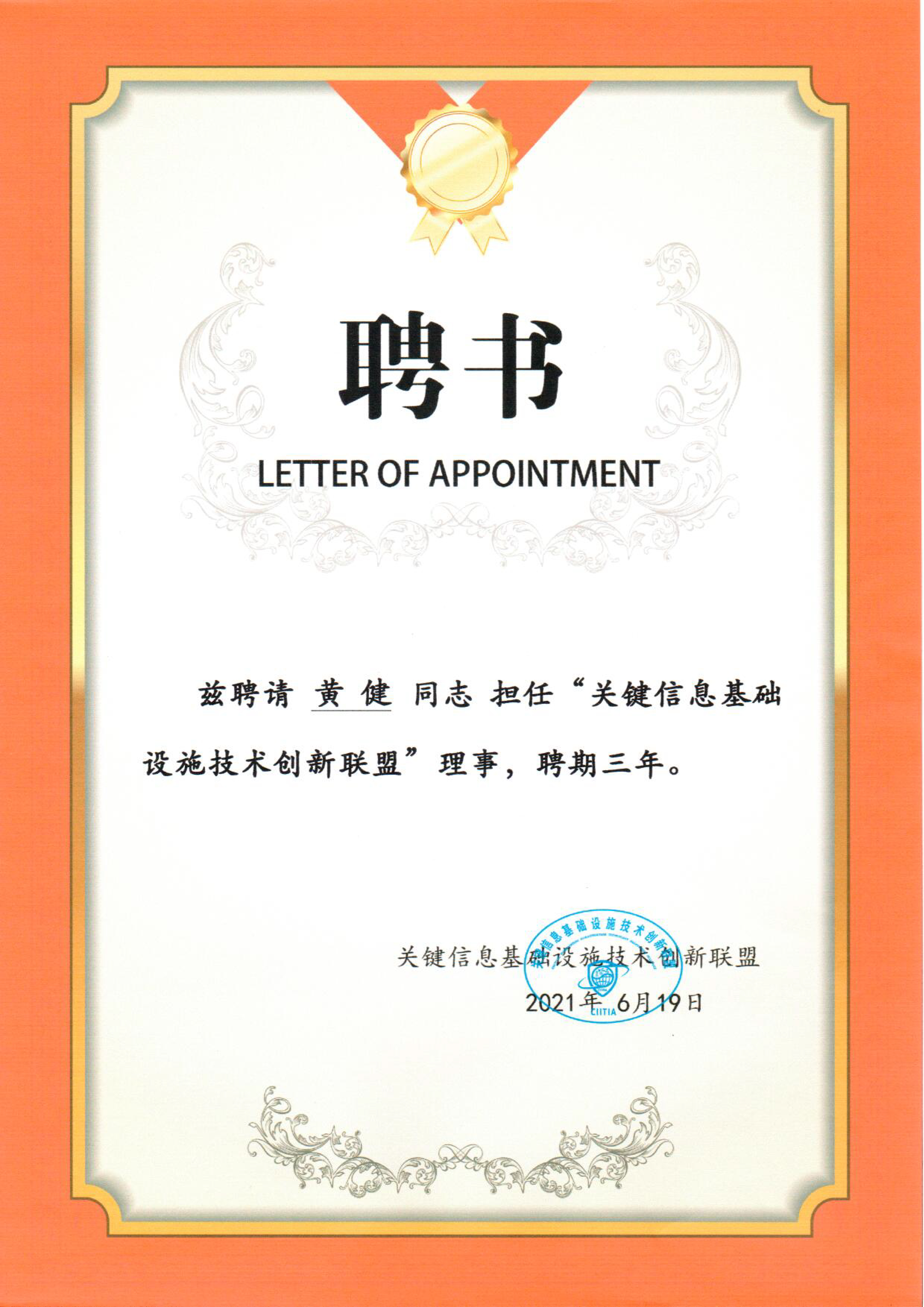 威廉希尔副总裁黄健先生被聘请担任“关键信息基础设施技术创新联盟”理事。