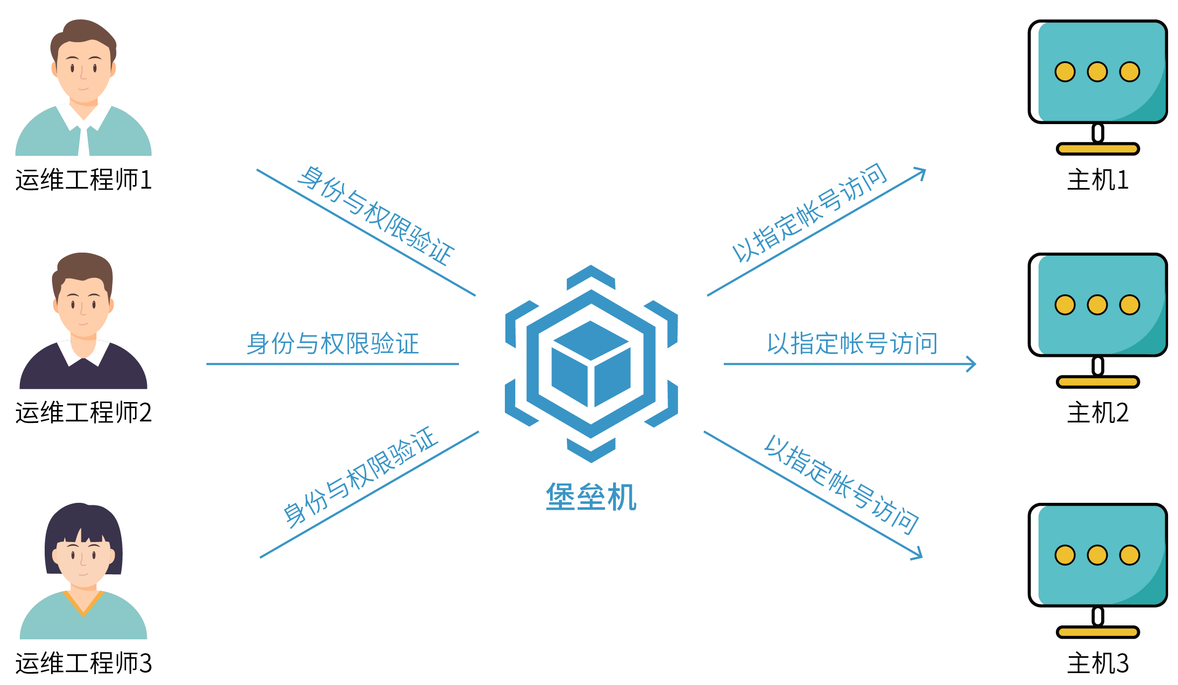 2.维护人员的权限无法基于最小权限分配原则管理,难以实现更细粒度的命令级权限控制,不同背景运维人员的行为给信息系统安全带来较大风险,系统安全性无法充分保证;