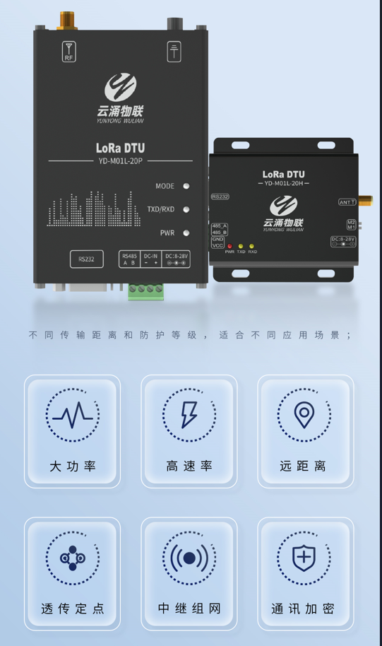 LoRa DTU:带有RS485/232接口(绿端子/标准DB9),分为基础款、增强款和工业款,不同传输距离和防护等级,适合不同威廉希尔;