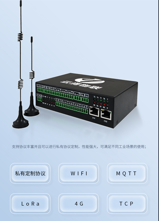 智慧边缘物联网关:支持丰富的通讯接口,工业级设计,支持协议丰富并且可以进行私有协议定制,性能强大,可满足不同工业场景的使用;