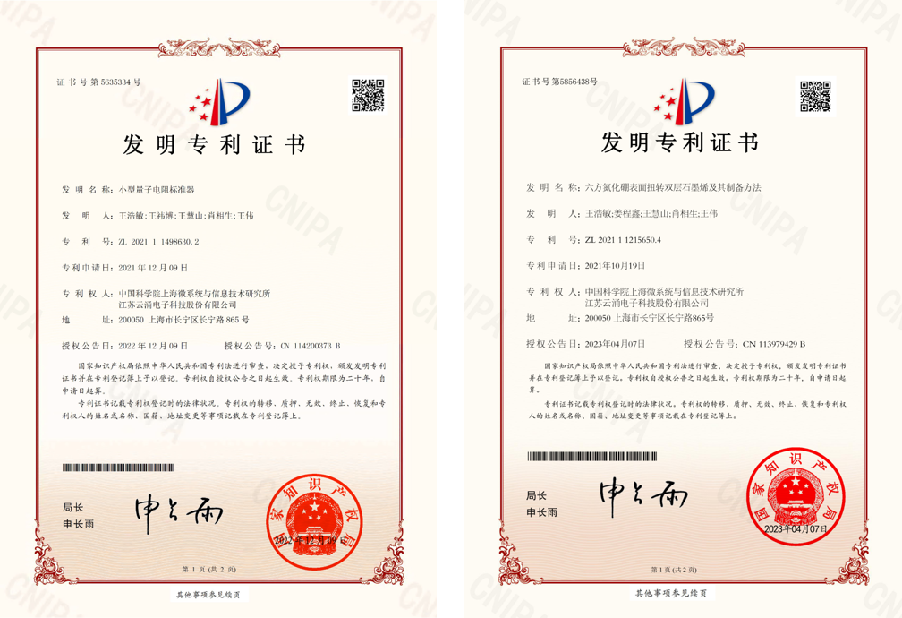 公司自2019年开始,与中国科学院上海微系统与信息技术研究所建立了产学研合作关系,推动最新科技成果转化,赋能创新产业发展。其中开展了关于量子电阻标准模块研发和量子电阻标准原型机研发的项目,其中标准模块的研发已经完成,原型机的研发还在有序进行中。截止到目前,双方共同申请了4项发明专利,其中已有2项获得授权证书。