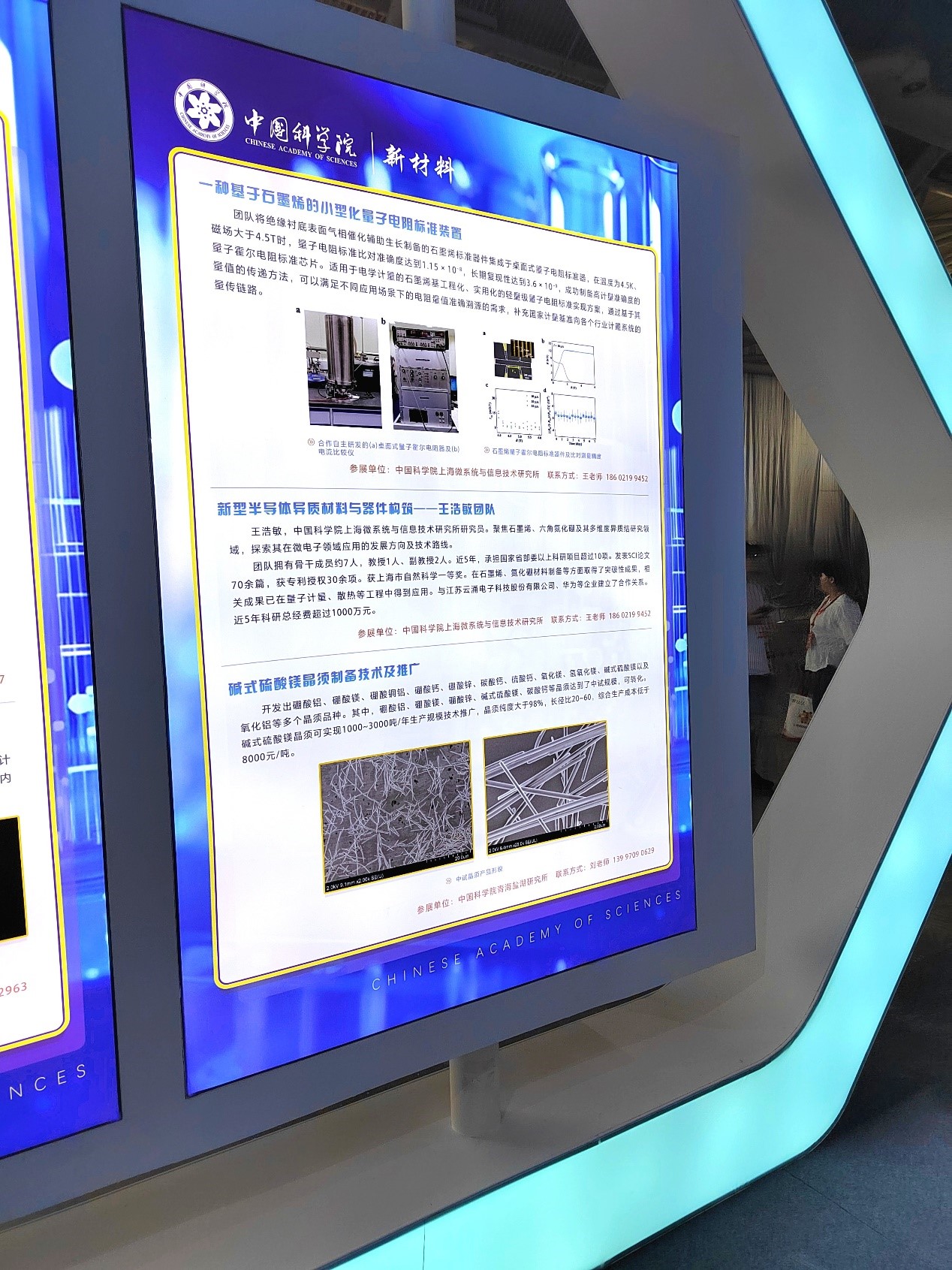 在中国科学院新材料展区中,一种小型量子电阻标准装置得到展示,这是中科院上海微系统与信息技术研究所王浩敏研究员团队的最新科研成果,威廉希尔作为产学研合作支持单位,全程参与其中。
