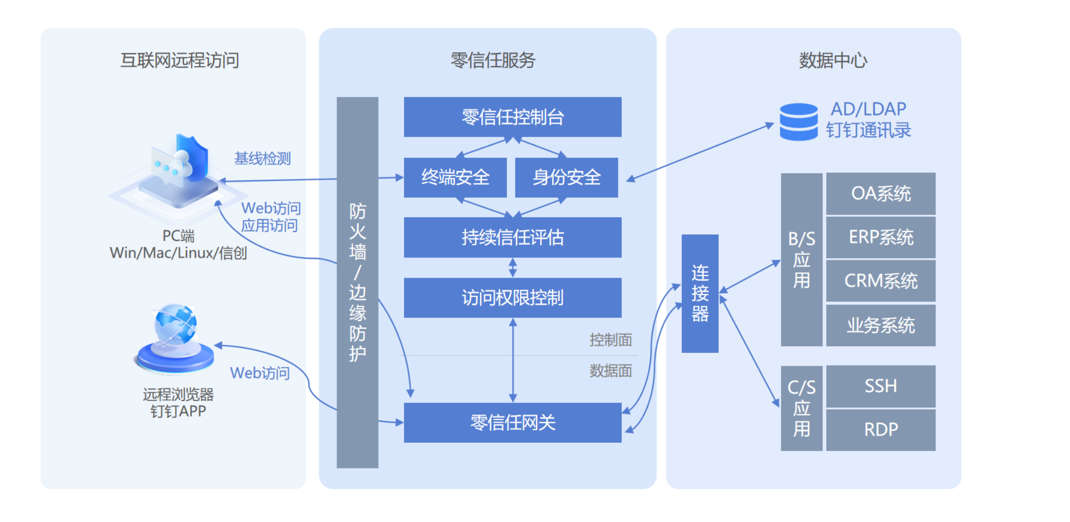 以下为部署零信任安全组件后的网络拓扑: