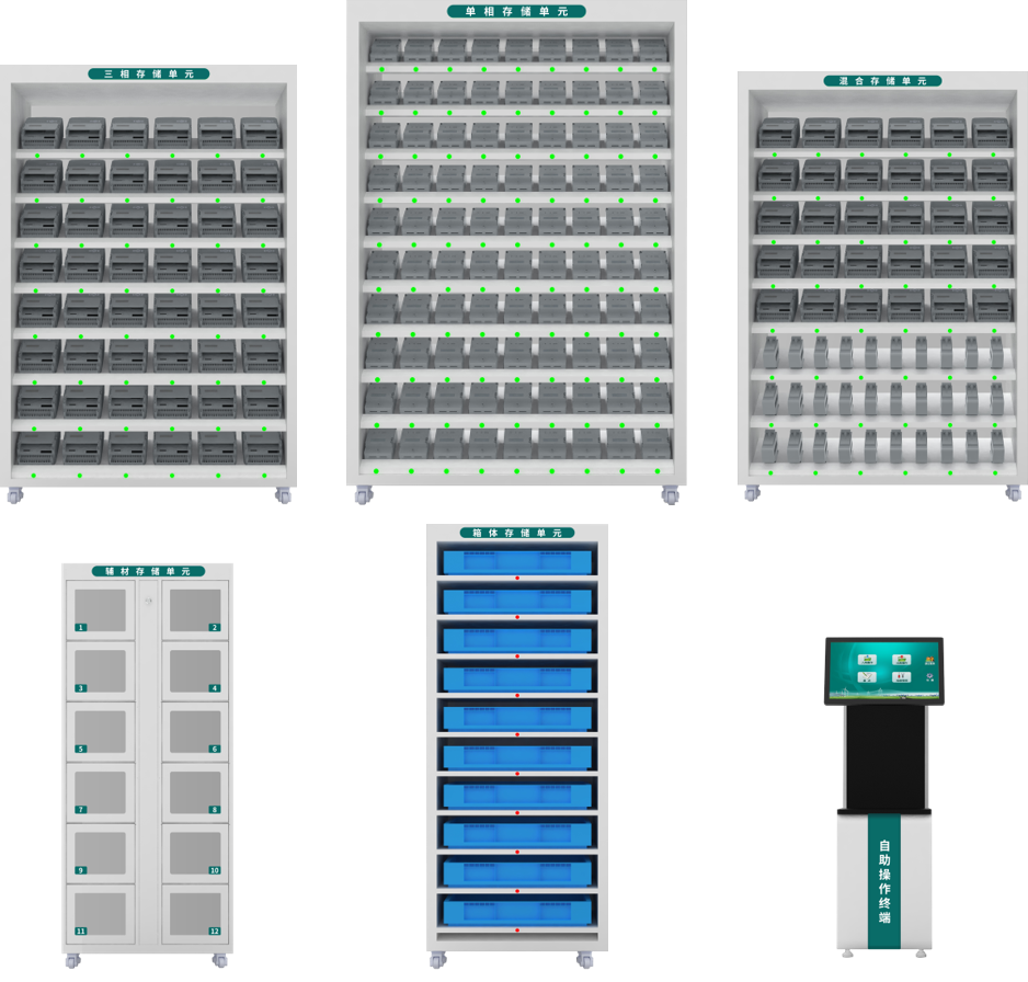在设备方面,可提供单相存储单位、辅材存储单元、混合存储单元、三相存储单元以及箱表存储单元等,根据库房实际情况按需组合,存储单元的多样性,极大地满足了现场空间的使用需求。而且结合智能操作终端的使用,一线业务人员在领用、存储计量资产时,只需在终端上点击工单,相应周转柜储位便会自动点亮,并伴随语音播报,快速引导人员完成相关业务操作,极大提高了一线业务人员的工作效率。