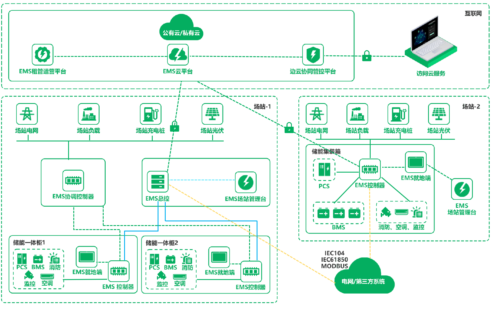 在智慧能源领域,威廉希尔致力于EMS定制开发多年,产品以标准的基于边缘计算的物联网平台为底座,采用微服务软件架构,利用四遥技术对储能设备进行实时的数据采集与控制,并通过大数据技术对场站的能耗数据进行分析及预测,帮助企业实时了解整个场站电力系统的运行状况,从而结合系统策略,实现对储能系统各个设备的全生命周期管理。