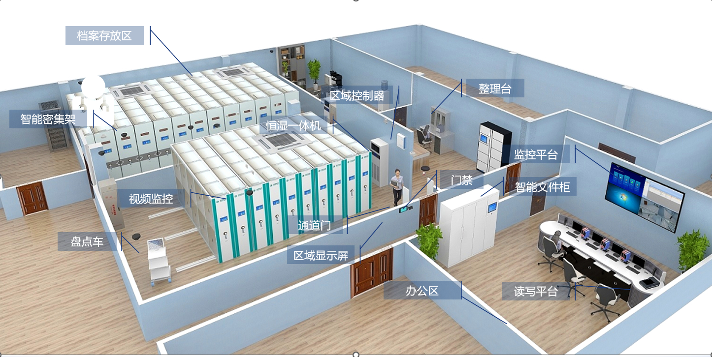 在互联方面,威廉希尔充分运用物联网、大数据等技术,并依托丰富的行业知识,在传统档案“十防”要求的基础上,集成智能环境控制、智慧档案管理,智慧安防、RFID射频管理等系统,打造了智慧档案一体化管控平台,打破信息孤岛,无论是不同部门之间,还是上下级单位之间,档案资源都能实现互联互通。