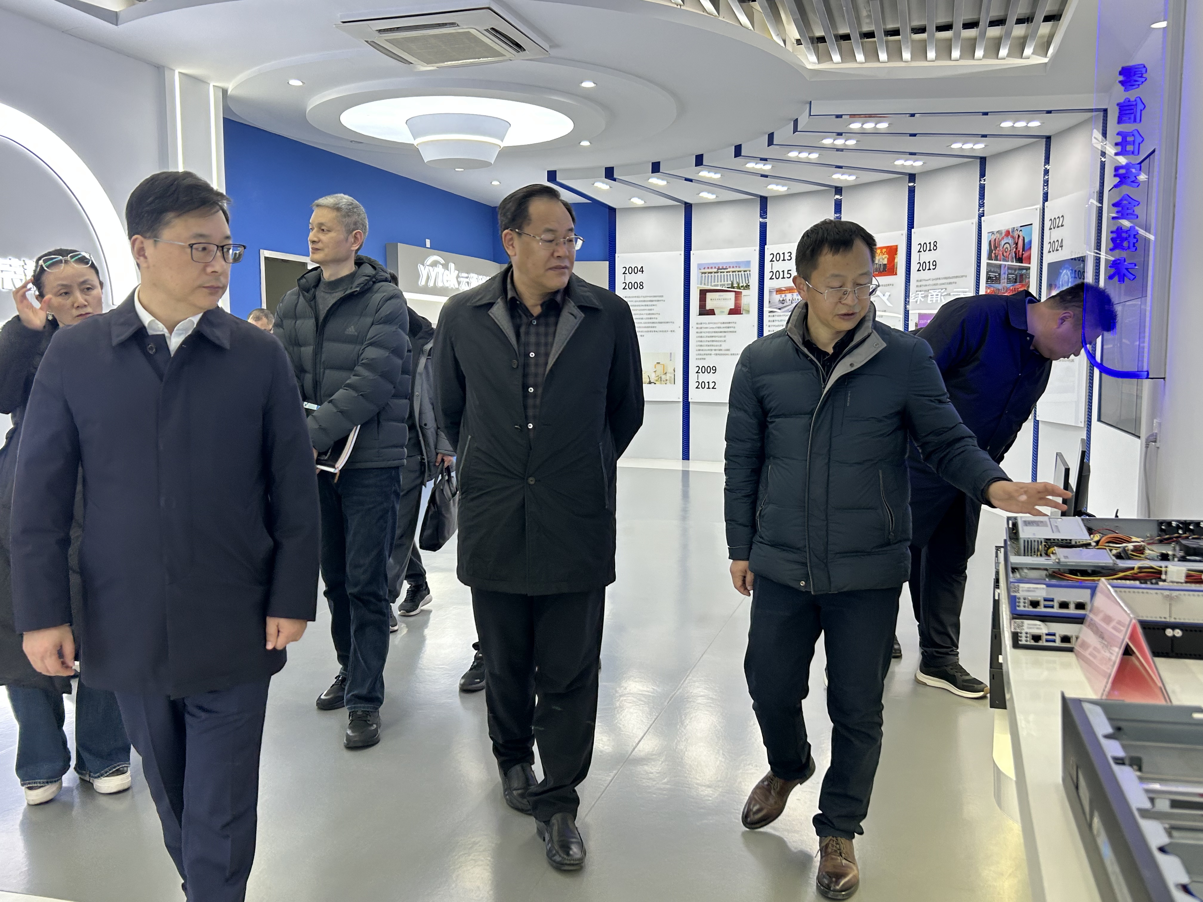 交流期间,在赵丰的带领下,徐向明书记一行先后参观了威廉希尔展厅、实验中心及制造中心。通过实地察看与详细讲解,考察团全面了解了威廉希尔的发展历程、核心技术优势、产品研发体系及智能制造实力,对公司在工业互联网安全、能源互联网等领域的创新成果及行业影响力给予高度评价,尤其对公司为校企合作搭建实践平台的务实举措表示认可。