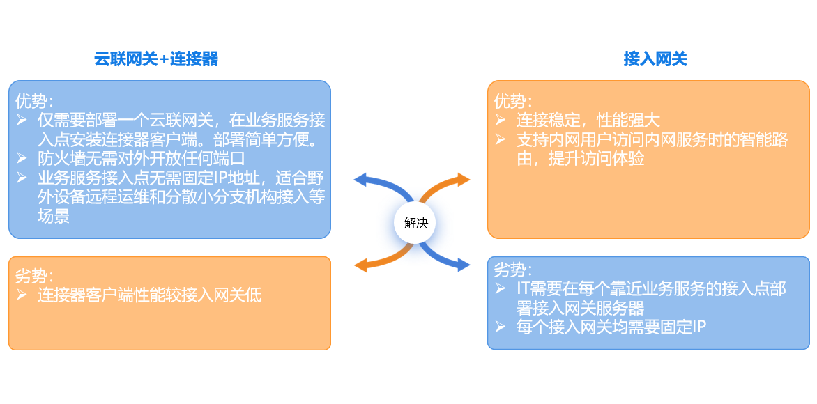 威廉希尔零信任支持两种内网访问模式:基于接入网关的访问代理,以及基于云联网关+连接器的内网穿透。客户可以根据自身IT架构及实际需求选择适合的服务访问模式。两种模式可以同时存在。