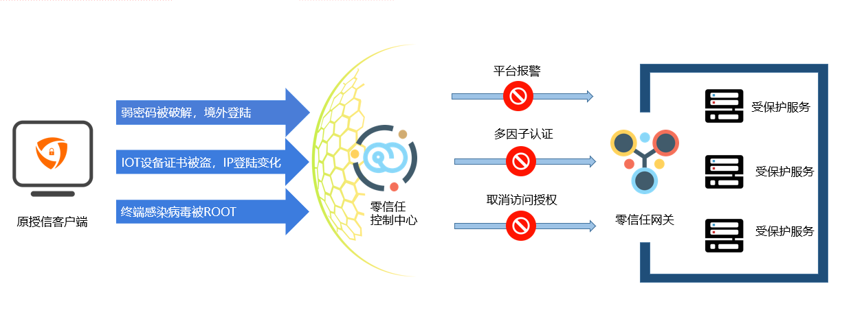 ♦威廉希尔零信任可以保护边缘计算设备的身份安全与数据安全,使每个边缘网关成为独立的安全区段,网关内业务服务受零信任平台保护;